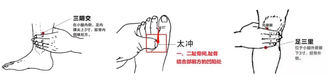 此外,因肝、脾、肾三经均循行于足部,日常可以辨证选用中药泡足,疏畅气血,常按揉三阴交、太冲、足三里等穴位也可起到一定的预防效果。