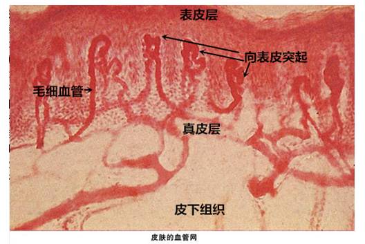 这就是为什么它在真皮层而不是在表皮层的原因,但是就算藏得那么深,还是会受到环境的影响。比如说夏天在大太阳底下,毛细血管就会扩张,因为需要大量血液