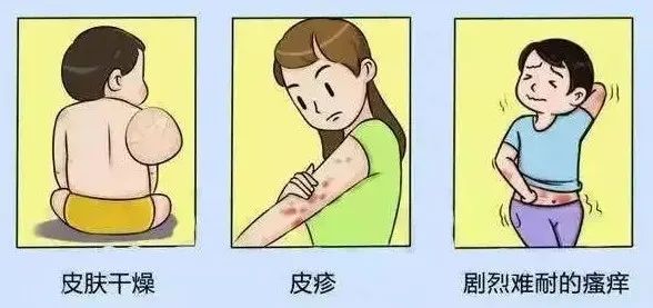 和成年人皮疹常出现(或复发)在一个或几个部位,特别是在上臂、肘窝,皮疹的颜色、程度和部位因人而异,但都有瘙痒。