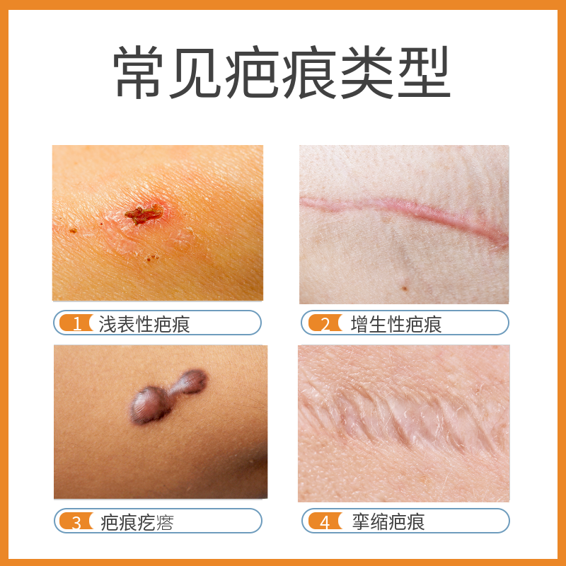 想要治疗疤痕,首先要了解疤痕。疤痕大体上可以分为四大类,分别为增生性疤痕、疤痕疙瘩、凹陷疤痕和挛缩疤痕。在这里讲几个只从外观上就可判断出疤痕类型的最简单的方法。