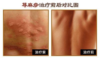 治疗前:何女士,有10年的荨麻疹病史,发病时瘙痒难耐在当地医院就诊过,可惜效果却并不明显。