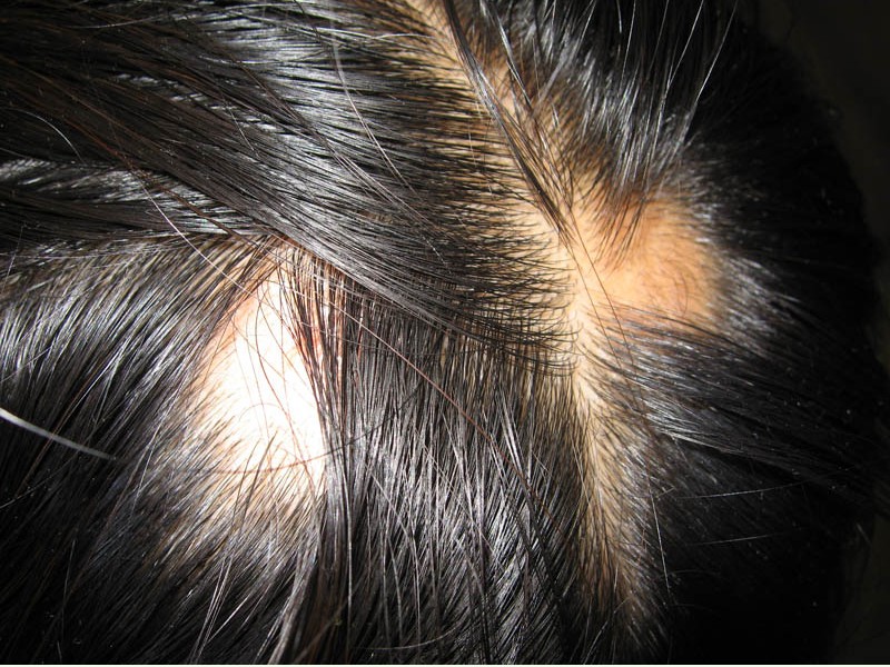 拔一根健康的头发,其根部应有约2毫米左右的灰白色头皮组织,且柔软而有弹性;相反,有脱发状况的病人的头发根部只有又干又脆的白点,说明头发根部营养不良。
