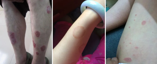 一旦患了体癣,你的皮肤上可能会出现红斑,一般是外围症状重,中间症状轻,这主要是真菌向外啃食皮肤角质所造成的。